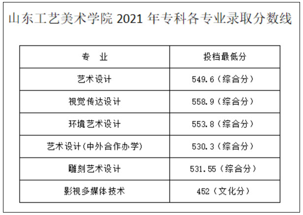 各省美术高考分站山东工艺美术学院2021年山东省专科专业录取线